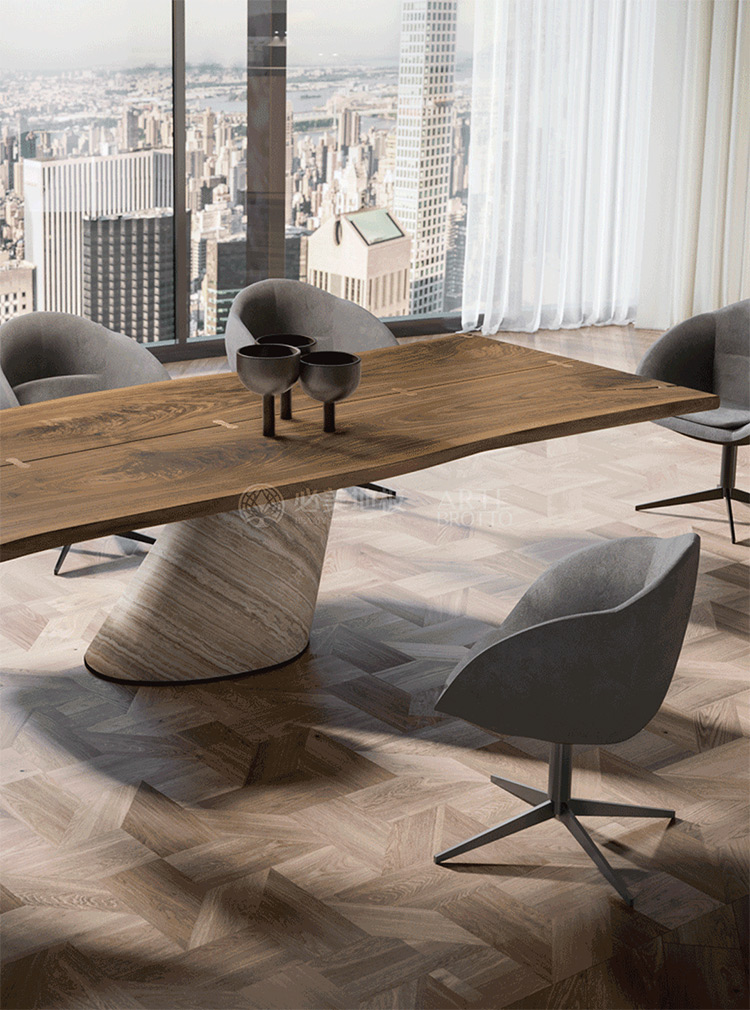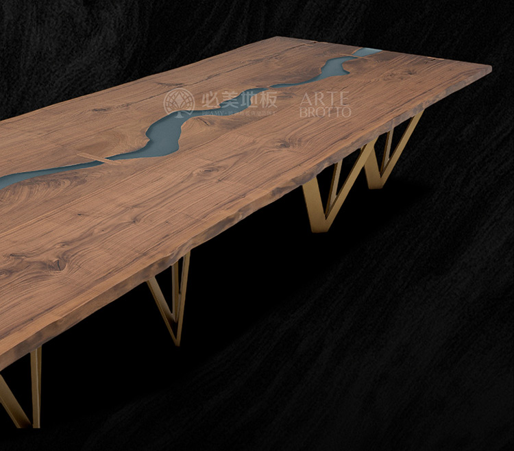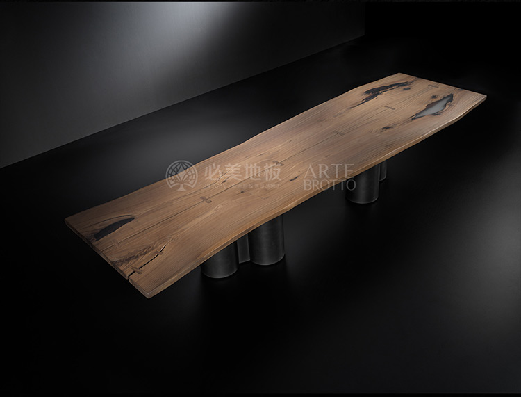 必美阿特·布魯托不僅提升了木材的美感,還創(chuàng)造了賦予作品個性的元素——飾面、使用樹脂來填充樹干多年來產(chǎn)生的自然裂縫,以及幾種珍貴材料制成的非凡設(shè)計(jì)桌腿。所有這些元素都有助于創(chuàng)造出一件真正的杰作,能夠適應(yīng)各種生活空間和風(fēng)格,具有個性和審美連貫性。
