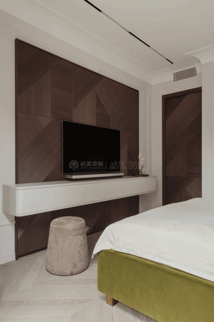 必美阿特·布魯托用于定制系列與家具的珍貴原料,源自雄偉壯闊的歐洲硬木森林。我們在這個私人住宅項目中發現了莊嚴而富有啟發性的空間維度,在這個項目中,Relevo 模塊化 3D 木墻板與客廳平面木墻板交錯鋪陳,在沉靜而莊嚴的空間里重現了森林的原始高度——提醒我們,一切非凡皆始于那片挺拔的自然綠暮。
