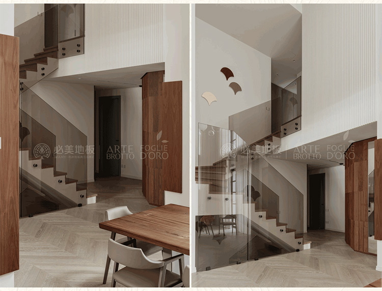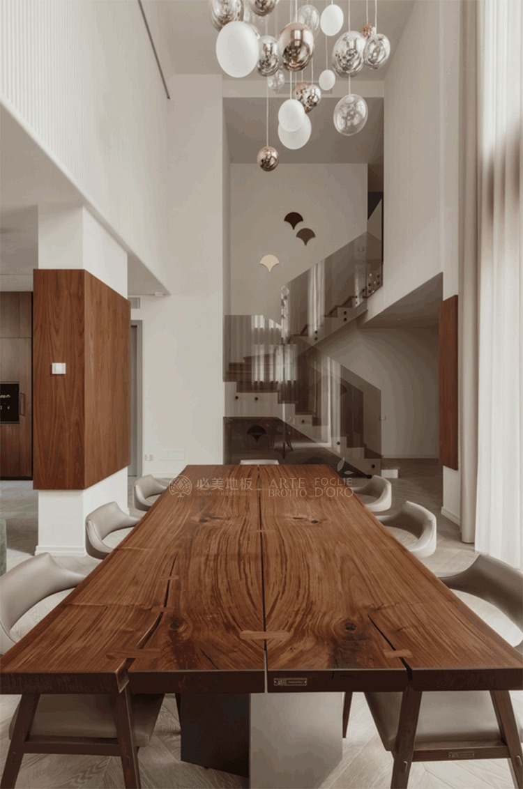 Floor | 必美阿特·布魯托Vero維羅桌、萊昂納多系列L31皮革椅子、Relevo系列模塊化3D木墻板、Tribeca 3D平面護墻板、必美菲列德羅定制人字拼木地板