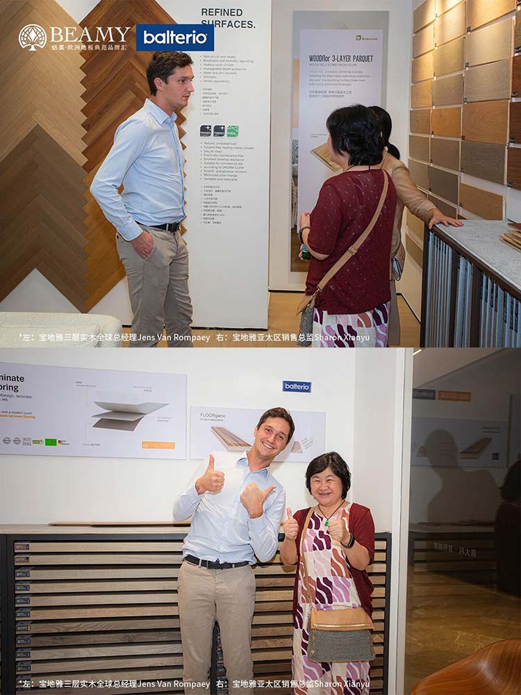 熱烈歡迎比利時寶地雅一行蒞臨必美集團,三層實木煥新系列全球首發,共繪健康家居地板新藍圖!10月10日,寶地雅三層實木全球總經理Jens Van Rompaey先生與寶地雅亞太區銷售總監Sharon Xianyu女士在必美國際集團總裁孫海源先生、必美國際集團品牌運營總監譚天謙先生的陪同下,共同走進必美地板羅浮宮店,開啟一場關于健康、藝術與可持續的深度對話。