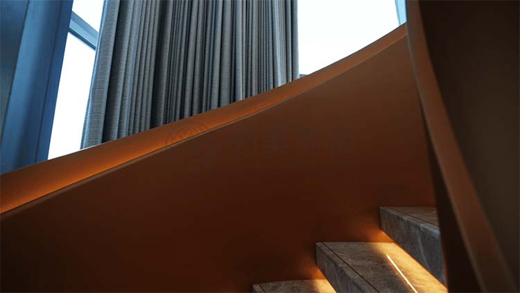 踏入這座頂奢府邸,首先映入眼簾的,是貫穿兩層、如雕塑般傲然屹立的旋轉樓梯。它不僅僅是一個連接空間的建筑構件,更是一件斥資數百萬極具設計感的亮眼藝術品。